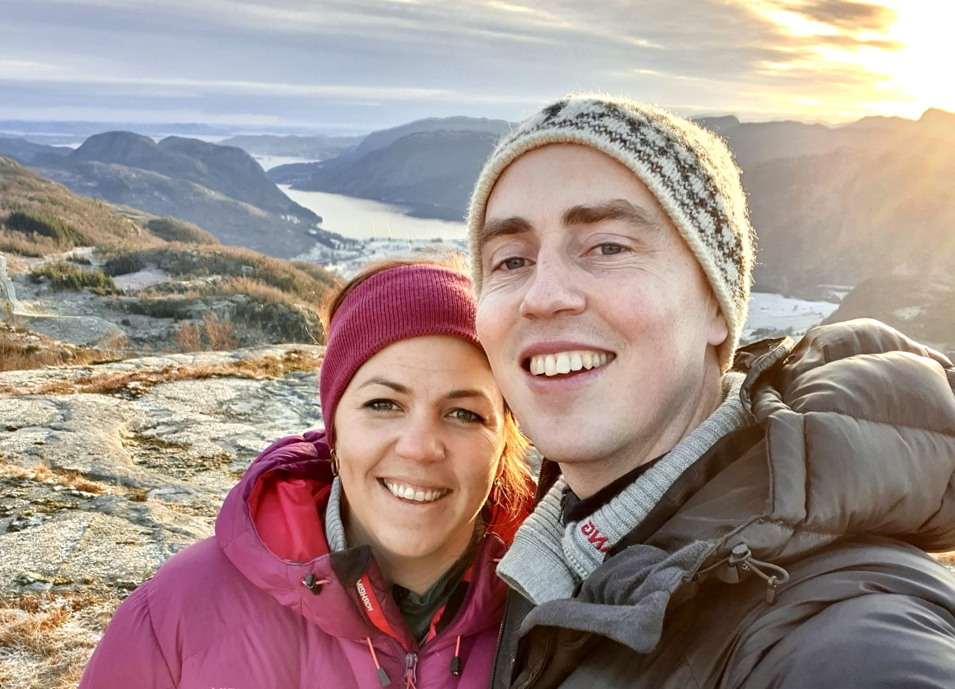 PUSTEROM: Ruth-Iren og Anders set pris på å kunna ta små pausar i kvardagen, gjerne på ein fjelltopp i Årdal. (Foto: Anders Sie)