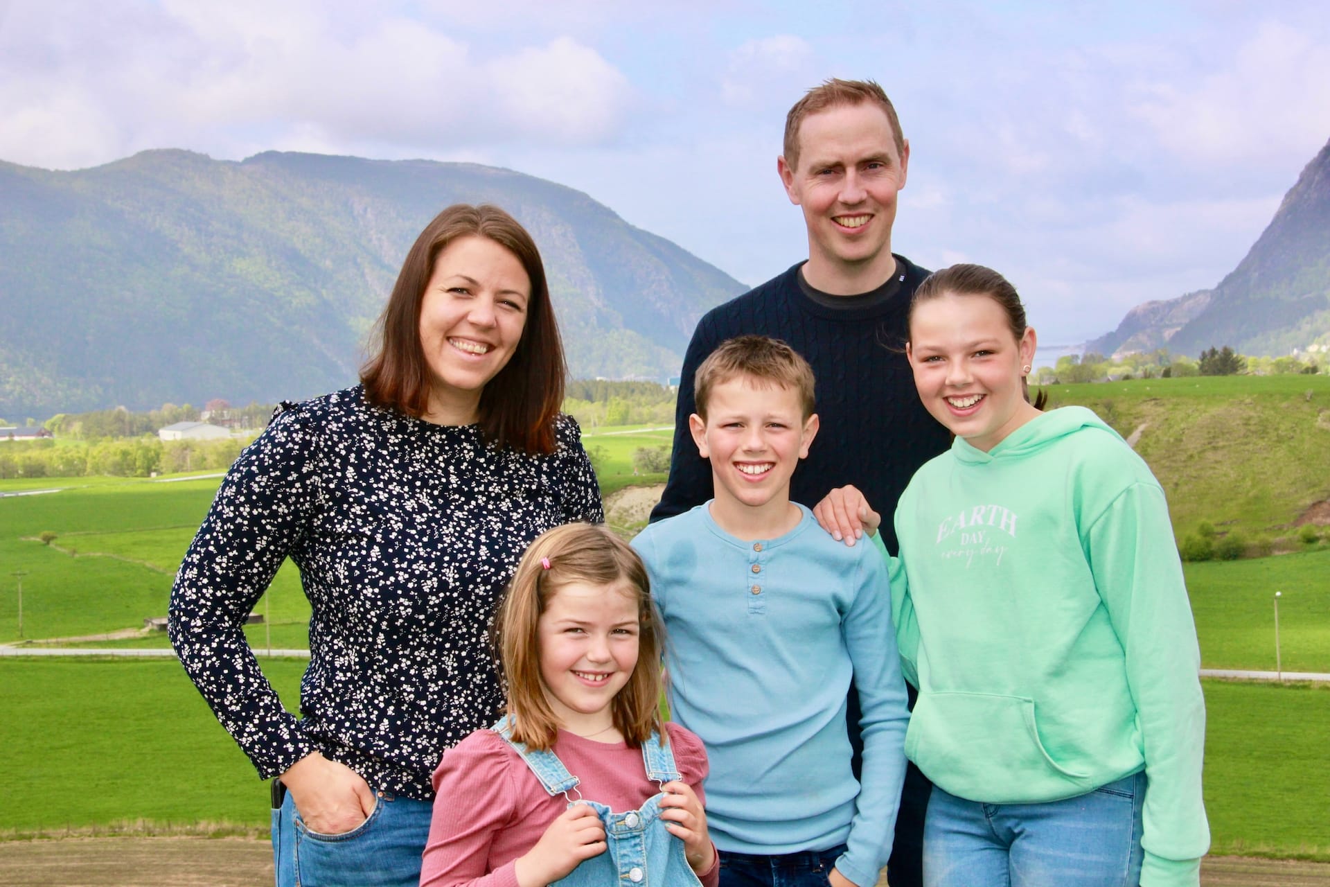 Ruth-Iren (37), Anders (40) og dei tre barna deira trivst godt mellom fjell og fjord, på garden Sedberg i Årdal. Anders har jobb i heimbygda, medan Ruth-Iren pendlar til Tau.