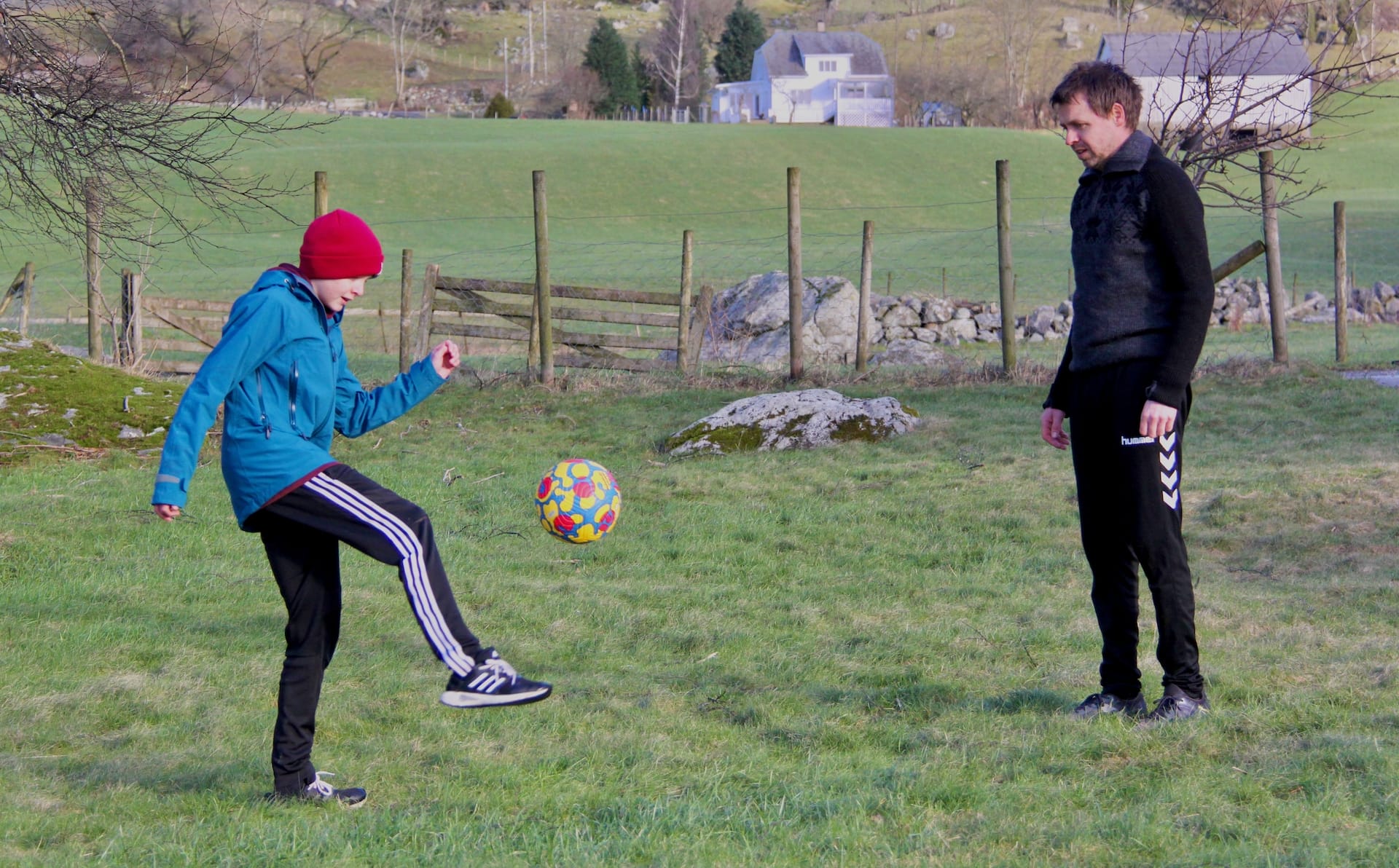 – Det er kjekkare å bu på landet, for her er det fleire ting å gjera enn i byen. I byen bur mange tett på kvarandre – gjerne i leilegheiter og nesten utan hagar – men her er det betre plass mellom husa, seier Jonah, som er glad for at han kan spela fotball og hoppa på trampolinen ute i hagen.