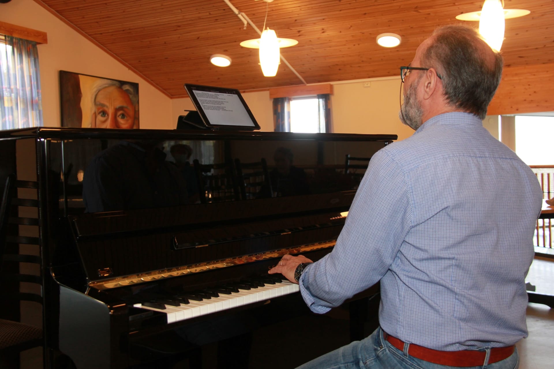 PIANOENTERTAINER: José jobbar som pianoentertainer, og spelar mellom anna konsertar på omsorgssentera i Hjelmeland. – Det kjekkaste med jobben som pianoentertainer er «magien» som oppstår av energien, spenninga, gleda og gjester som gjev merksemd og respons, forklarer José. (Foto: Morten Hetland)