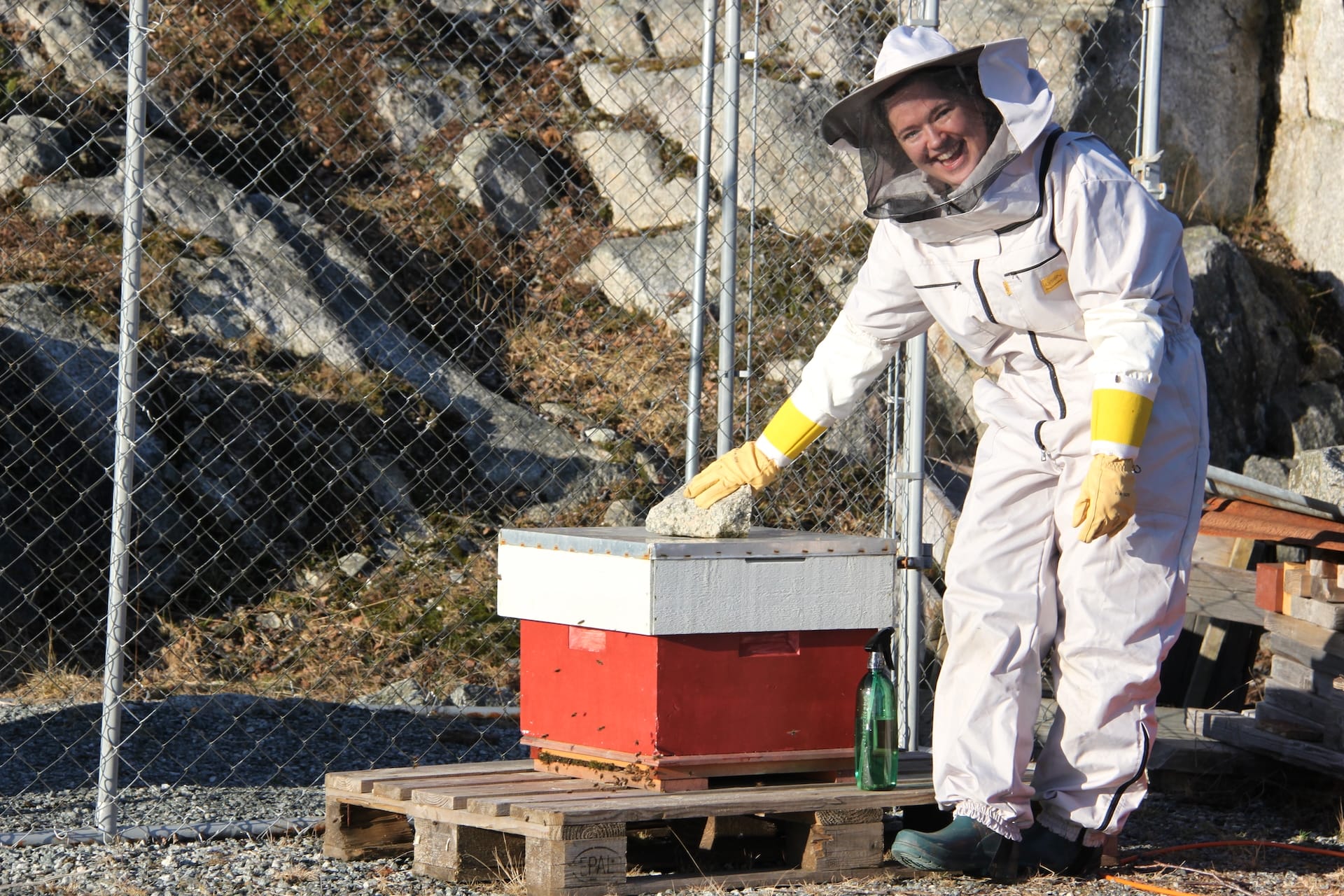 Sola skin på den sørvest-vende hagen til familien Altamirano, like ovanfor ferjekaien i Nesvik. Strålene varmar ikkje så mykje, men nok til at bikuben har vakna til liv.